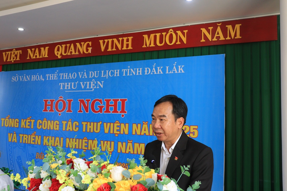 Phát biểu chỉ đạo tại Hội nghị, ông Lê Hoàng Phú – Phó Bí thư Đảng ủy, Phó Giám đốc Sở Văn hóa, Thể thao và Du lịch ghi nhận và đánh giá cao tinh thần đoàn kết, trách nhiệm và những kết quả nổi bật mà tập thể Thư viện tỉnh đã đạt được trong năm 2025; đồng thời định hướng một số nhiệm vụ trọng tâm cần tập trung thực hiện trong năm 2026, trong đó nhấn mạnh việc tiếp tục đổi mới phương thức hoạt động, nâng cao chất lượng phục vụ bạn đọc, đẩy mạnh chuyển đổi số và mở rộng phạm vi phục vụ đến các vùng đặc biệt khó khăn.